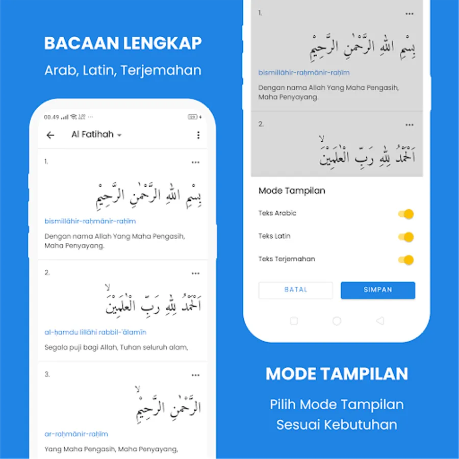 > Recite the Quran and Indonesian translation accompanied by reading Latin text for those who are not proficient at reading Arabic text.
