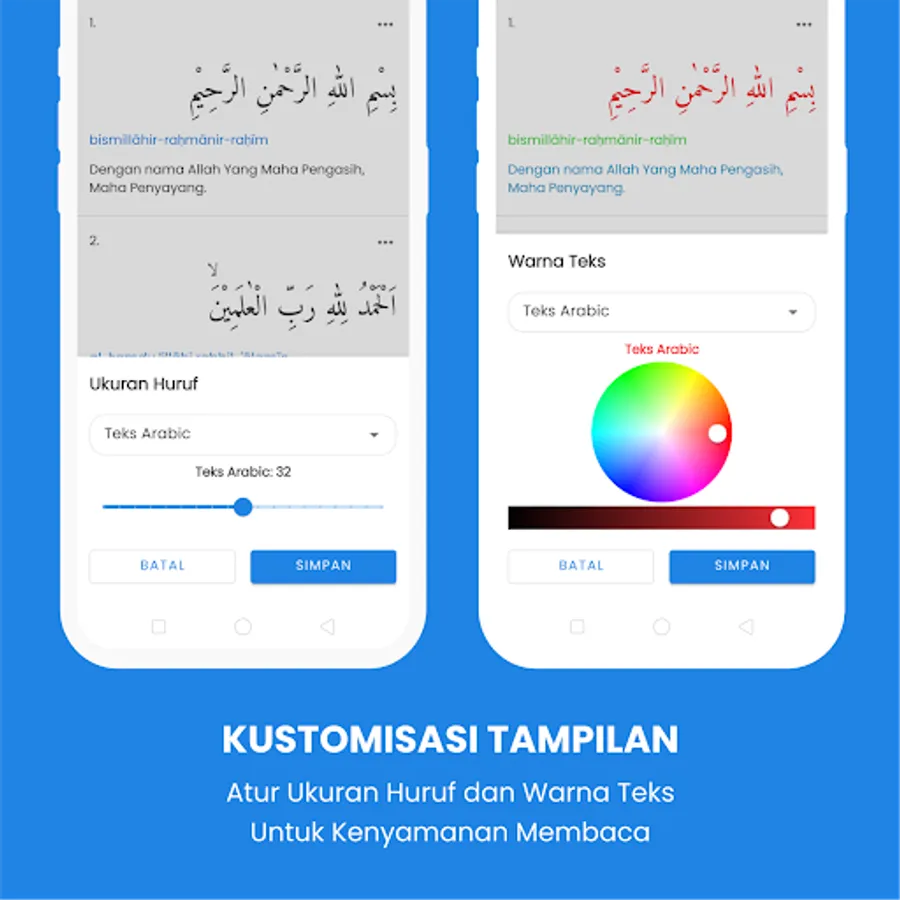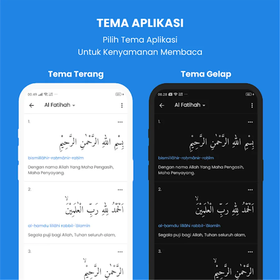 This e-Quran is specially made for Muslim Muslims and is very suitable for memorizing the 30 juz of the Koran and the hatam of the Koran because it is equipped with clear Arabic, Latin and Indonesian translations.