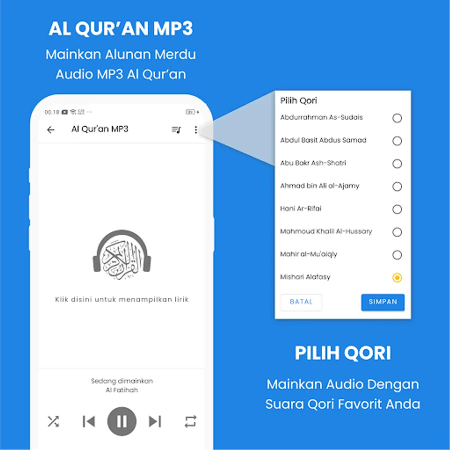 Al Quran 30 Juz Offline is also equipped with mp3 Quran audio that can be played online or offline.
