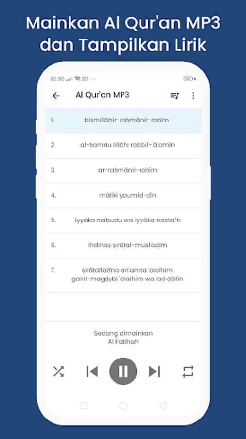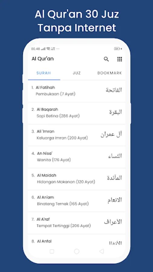 Al-Quran application and Indonesian translation complete with Arabic, Latin and translation readings and Al-Quran mp3.