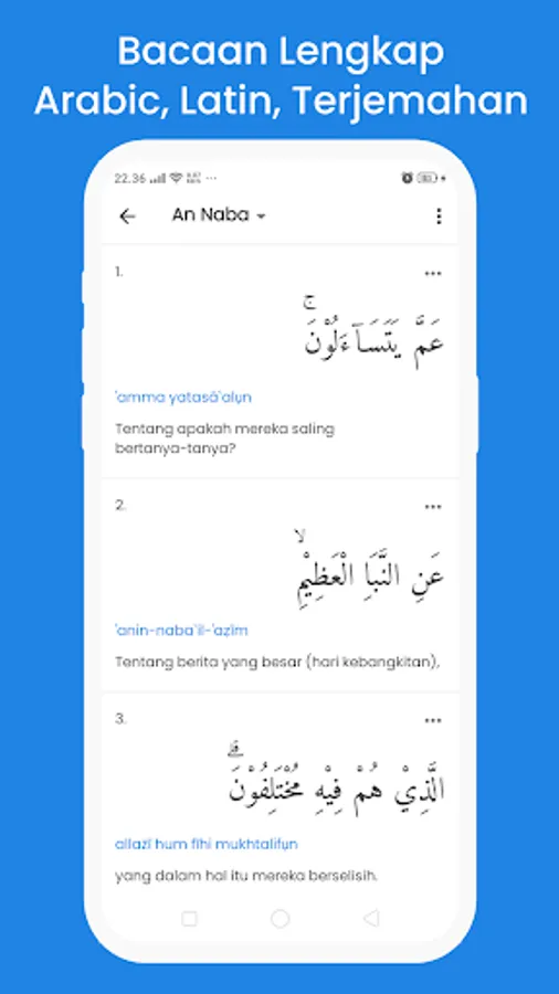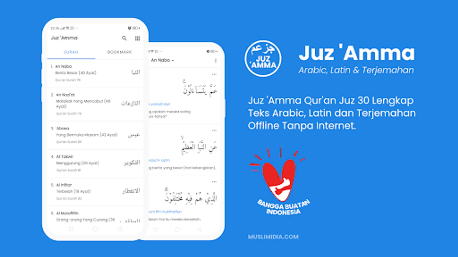 Juz Amma or Juz 30 Al-Quran short letters complete with reading Arabic, Latin and Indonesian translations.