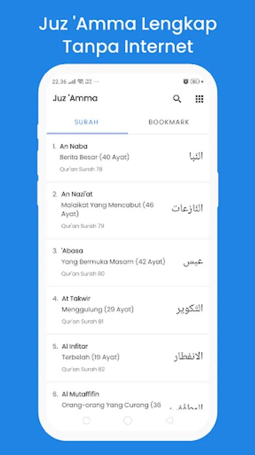 > Read Juz Amma complete with Arabic, Latin reading texts and translations without the internet.