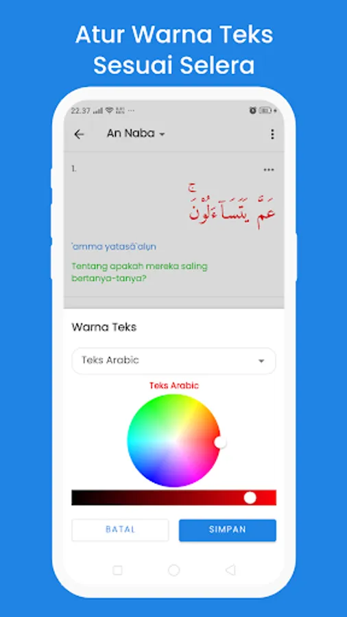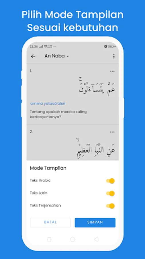 > Set the juz 'amma reading display mode according to your wishes and needs.