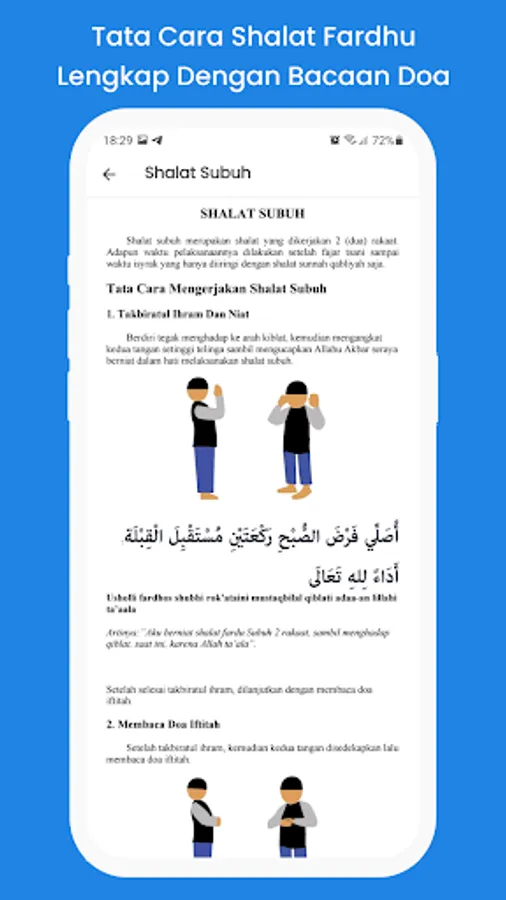 This prayer guide apk is equipped with various other features such as procedures for performing ablution and tayammum procedures as well as a collection of daily prayers.