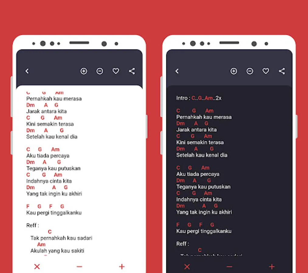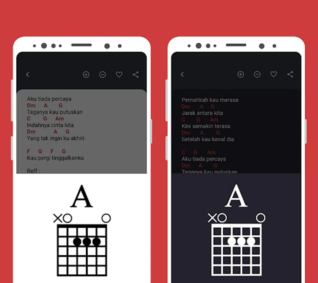 - Guitar chords and song lyrics from all genres of Indonesian music (Pop, Rock, Jazz, Reggae, Dangdut, Tembang Memories, Compilation), Malaysian, and Western.