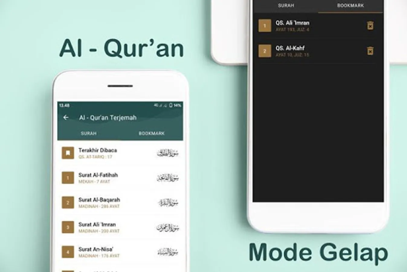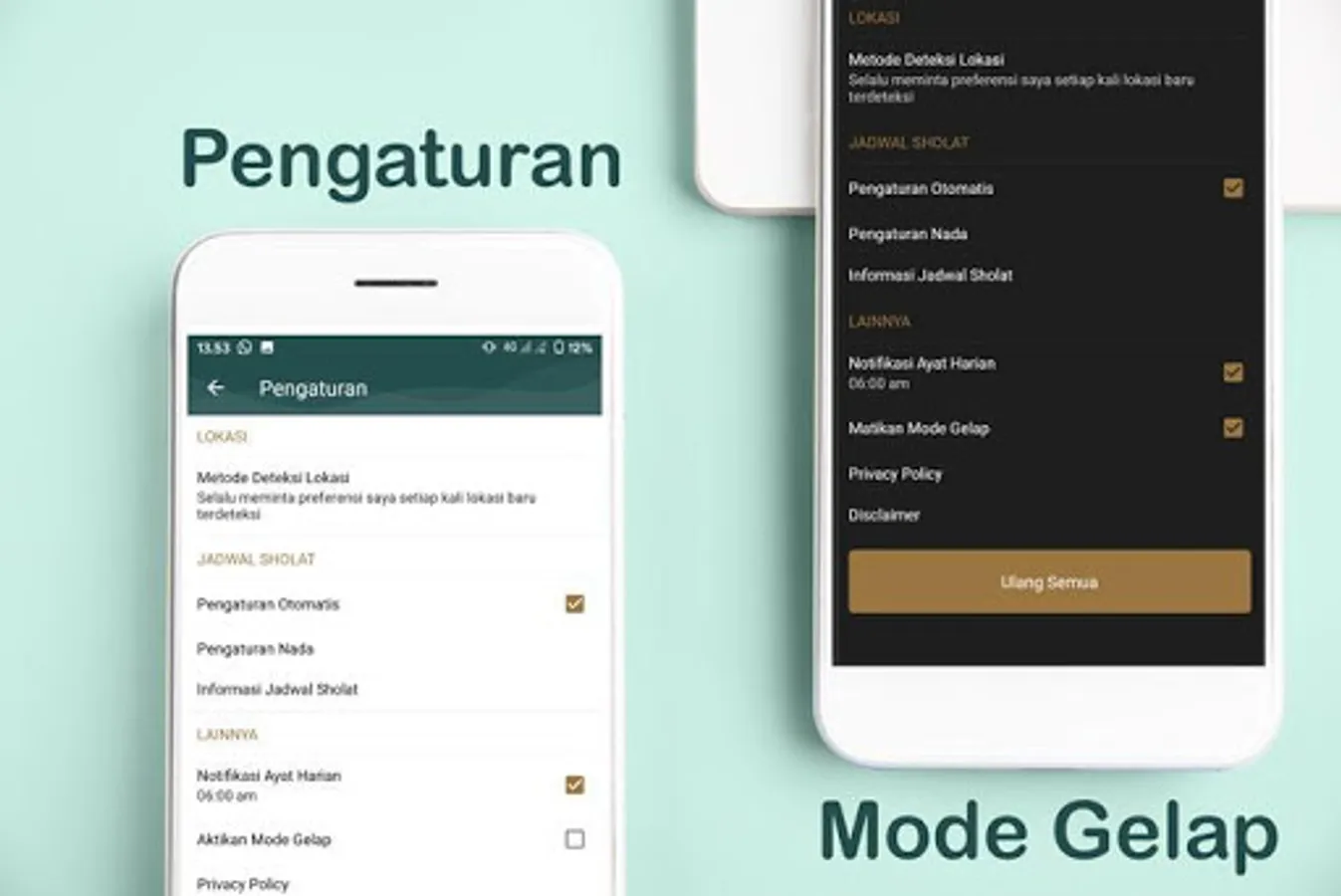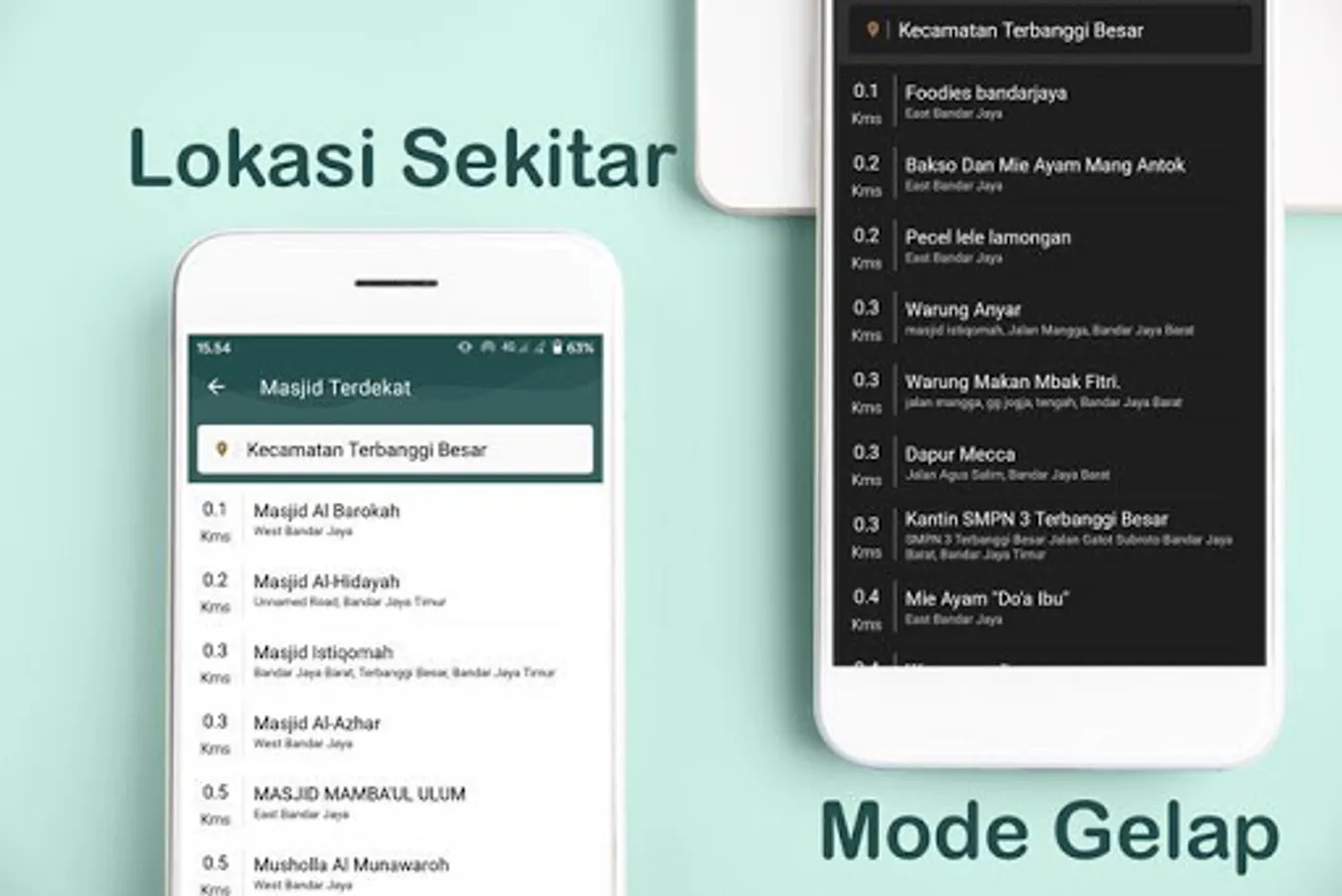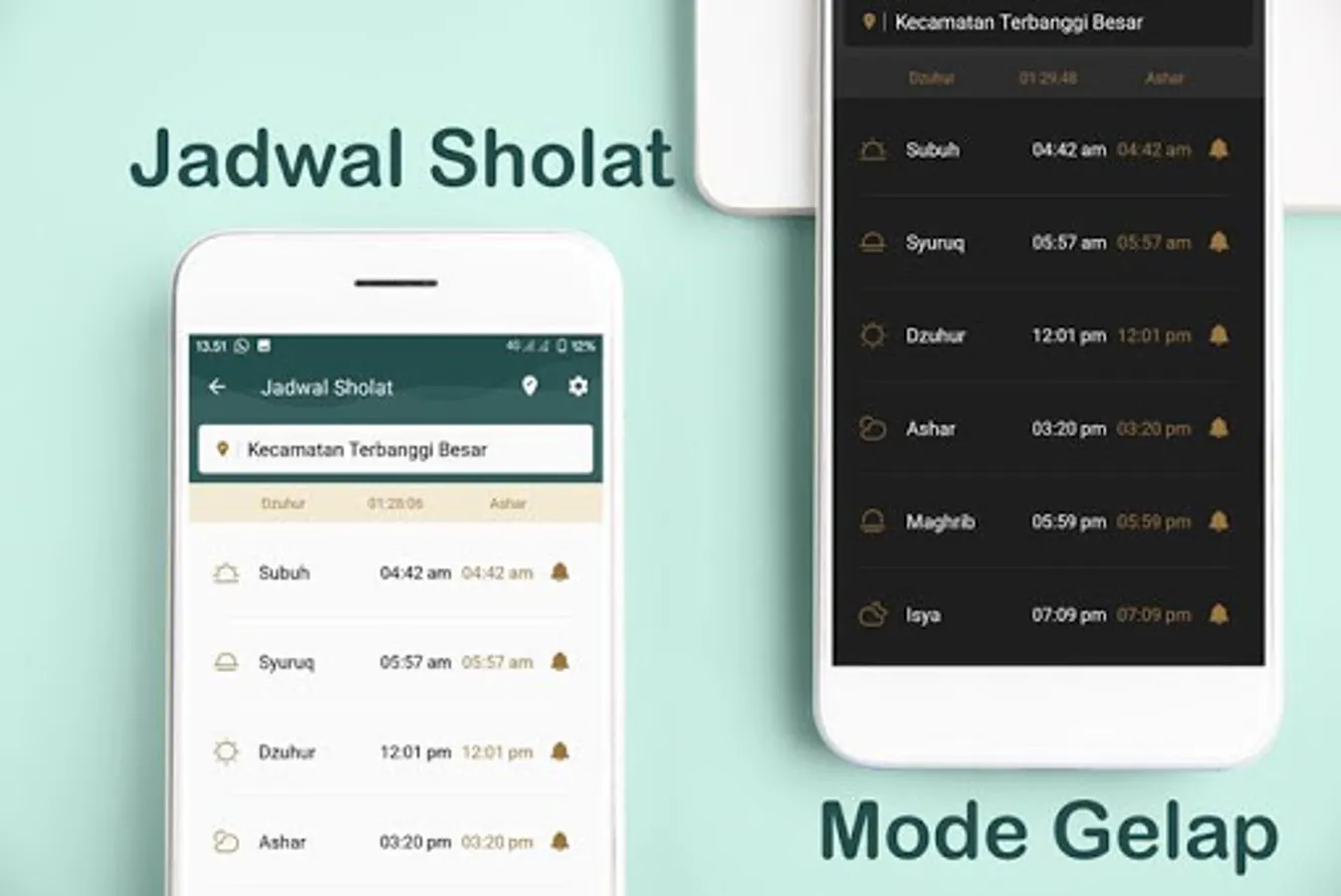 Features in the Indonesian Muslim application - Al-Qur'an, Prayer Schedules, Qibla, Asmaul Husna, Prayers, Dhikr & Digital Tasbih:
