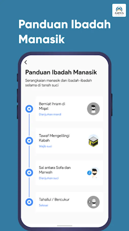 With the Umrah application, AMWA Tour helps pilgrims in worshiping in the holy land, during the implementation of Umrah and Hajj. The advantages of our Umrah travel application are equipped with prayer guide features, hotel location maps, real-time maps of congregational gathering points, Qibla direction determinants, perpetual prayer schedules, daily prayers and dhikr.