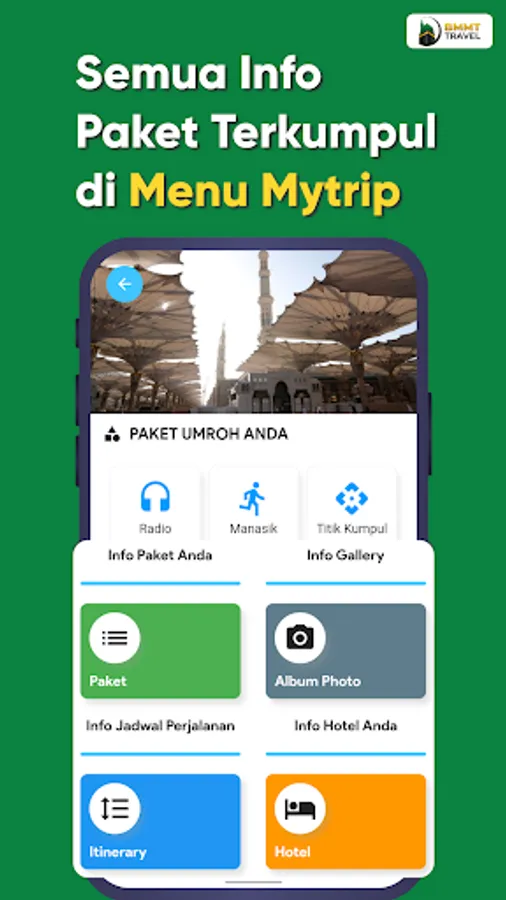 Applications that are used to assist pilgrims in worshiping in the holy land such as Umrah and Hajj. already equipped with prayer guides, Qibla direction, prayer schedules and real-time congregational map information at the Prophet's mosque