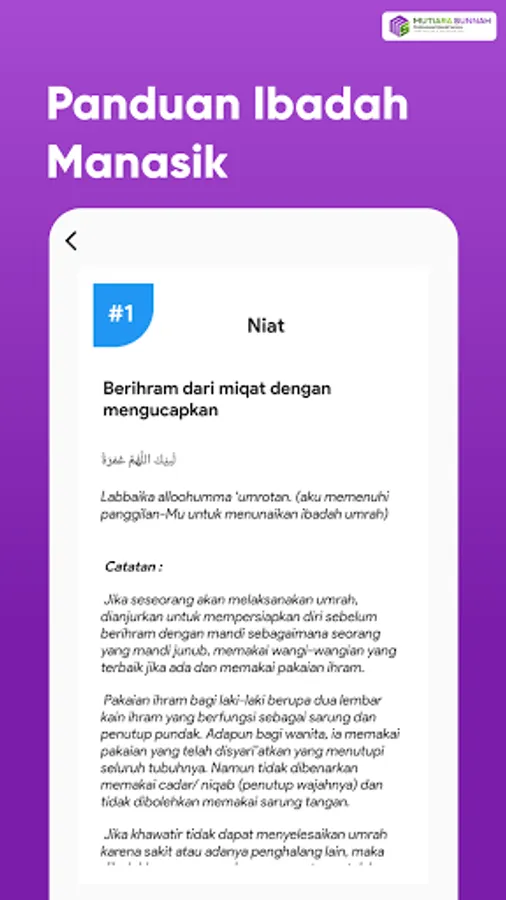 Application used to assist pilgrims in worshiping in holy land such as Umrah and Hajj. already equipped with a prayer guide, Qibla direction, prayer schedules and map information of the congregation in real time at the Nabawi mosque