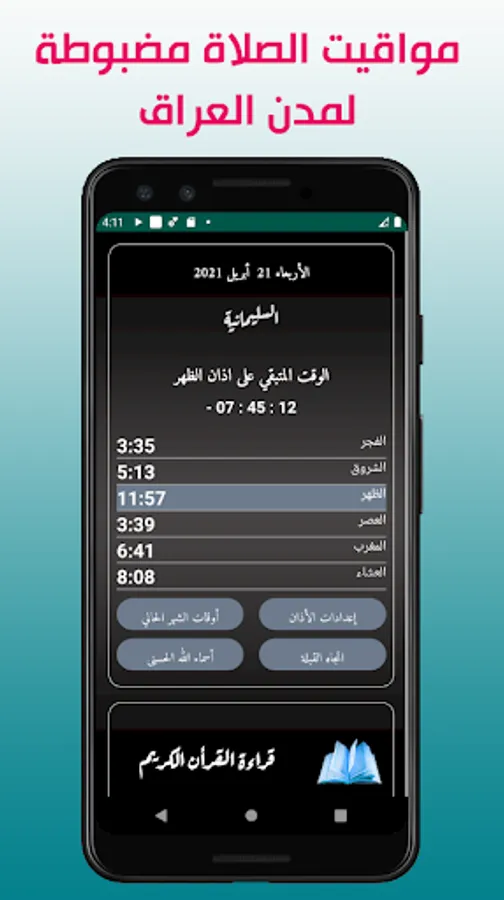 The Iraq prayer times application is a professional application that helps you know the prayer times in Iraq without the need for the Internet. There are many cities in Iraq, and the application helps you to know the prayer times in these Iraqi cities. You can find out the times in Iraq on all days of the year: Prayer times in Iraq in Ramadan and in non-Ramadan. You can also view Iraq prayer times. You can also read the morning and evening remembrances, as well as lessons about prayer, lessons about faith, and maintaining prayer.