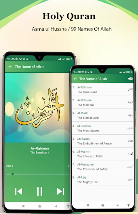 99 Names of Allah with visuals and audio.