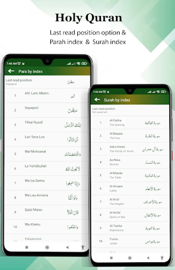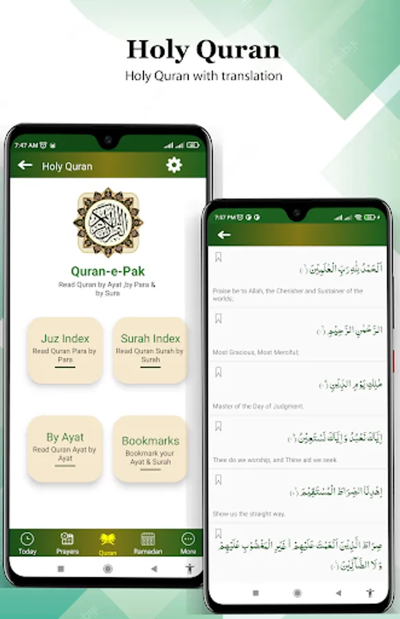 Our app remembers your last-read position, making it easy to continue your spiritual journey seamlessly. Explore the Quran in its entirety with added translations, helping you comprehend its profound meanings and teachings. This feature empowers you to delve into the Quran at your pace and convenience, enhancing your understanding and connection with the holy book.