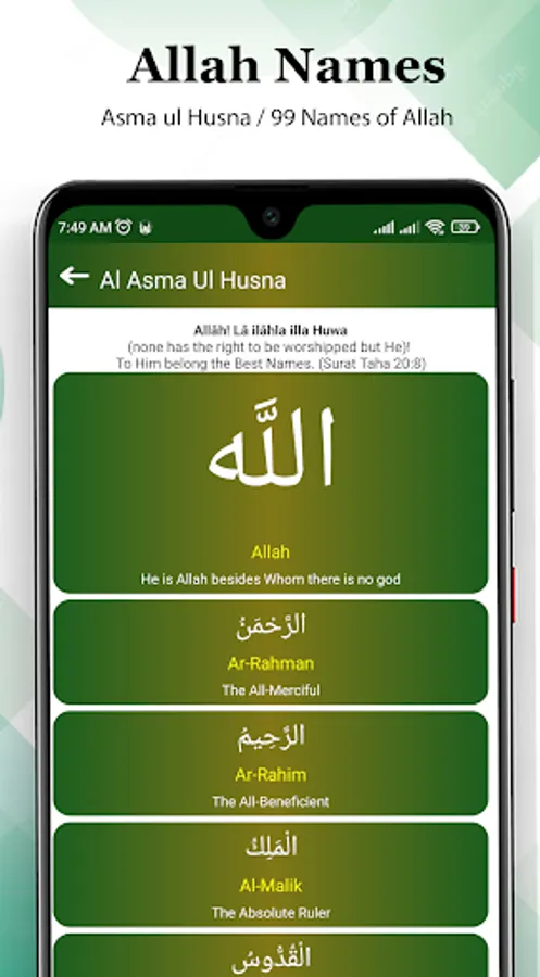 Our app is a treasure trove of divine wisdom, offering you the 99 Names of Allah (Asmaul Husna) along with their profound meanings and precise pronunciation. Explore the attributes that define the Almighty, deepening your connection to the Divine. With every name, you'll discover a unique facet of Allah's boundless mercy, compassion, and majesty.