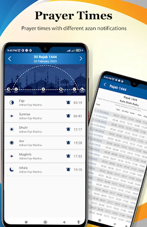 Muslim Prayer times with Athan notification. Daily prayer times and monthly prayer timetable are also available in this app. Based on your current location.