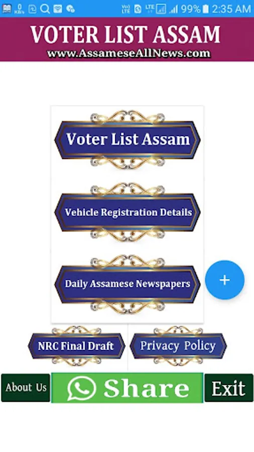 In this app you easily find Assam state's voter list. This is open in pdf mode. This pdf file is village wise. Also you find rejected voter list and new name add voter list. In app At first you can select district then it open easily. Here also more available data and information like this Assamese all newspapers online, check your vehicles RC status and daily important assam related information etc. This app is suitable for assamese people from North-East India. Here you also find daily important information, for example-