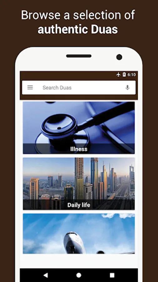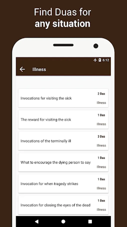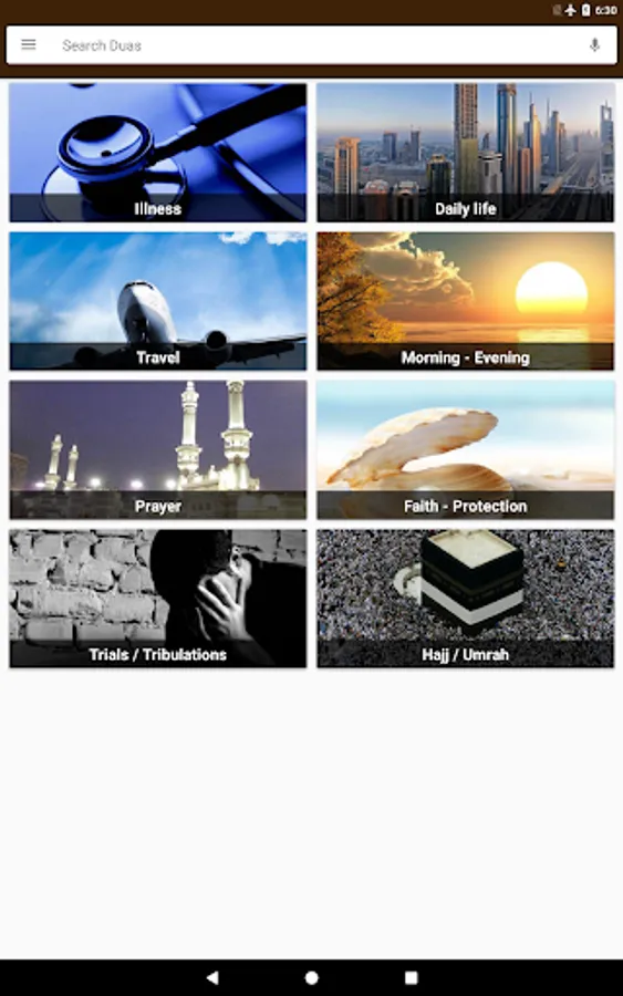 Dua provides a collection of 260+ authentic dhikr and supplications found in the holy Quran and the Sunnah. This application for Android has a simple and intuitive design, and many useful features.