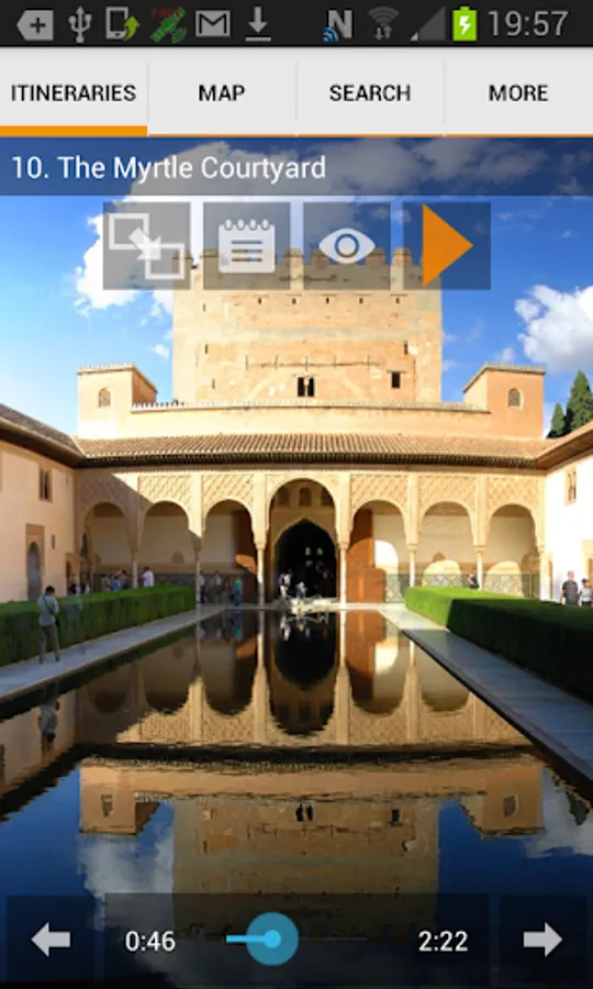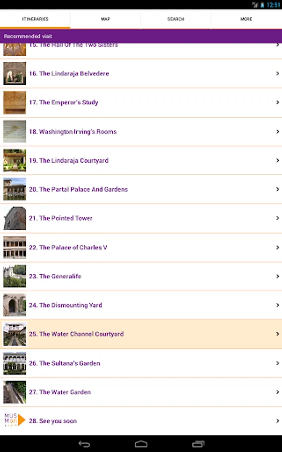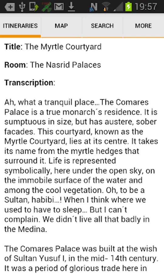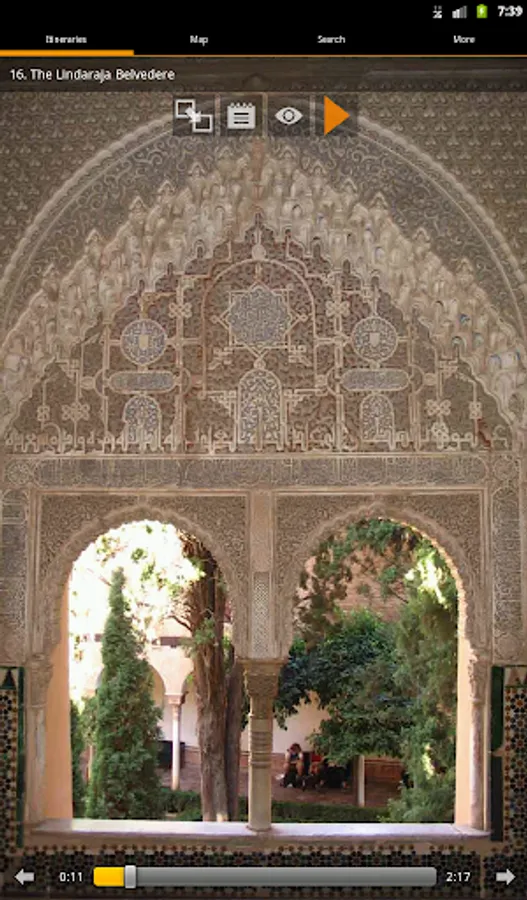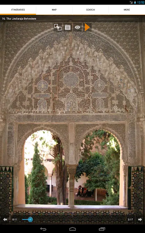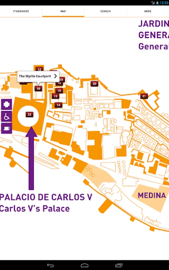 The Alhambra of Granada MUSMon.com Audio Guide explains in a clear, relaxed, accurate way this World Heritage Site. It comfortably guides you, at your own pace, using interactive maps and pictures. It tells you everything you need to know through a 70-minute professional recording, making your visit more entertaining and memorable.