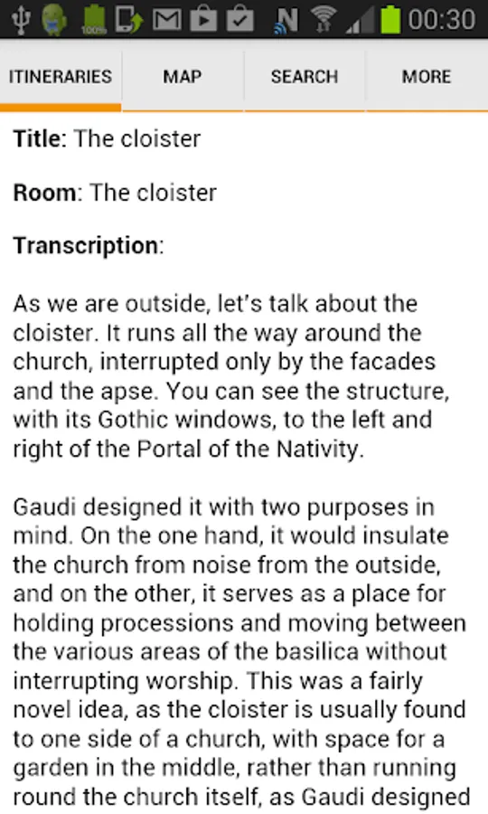 The “Sagrada Familia” (Holy Family) MUSMon.com Audio Guide explains in a clear, relaxed and accurate way this Barcelona icon. Antoni Gaudi´s masterpiece. It comfortably guides you, at your own pace, using interactive maps and pictures. It tells you everything you need to know through a 65-minute professional recording, making your visit more entertaining and memorable.