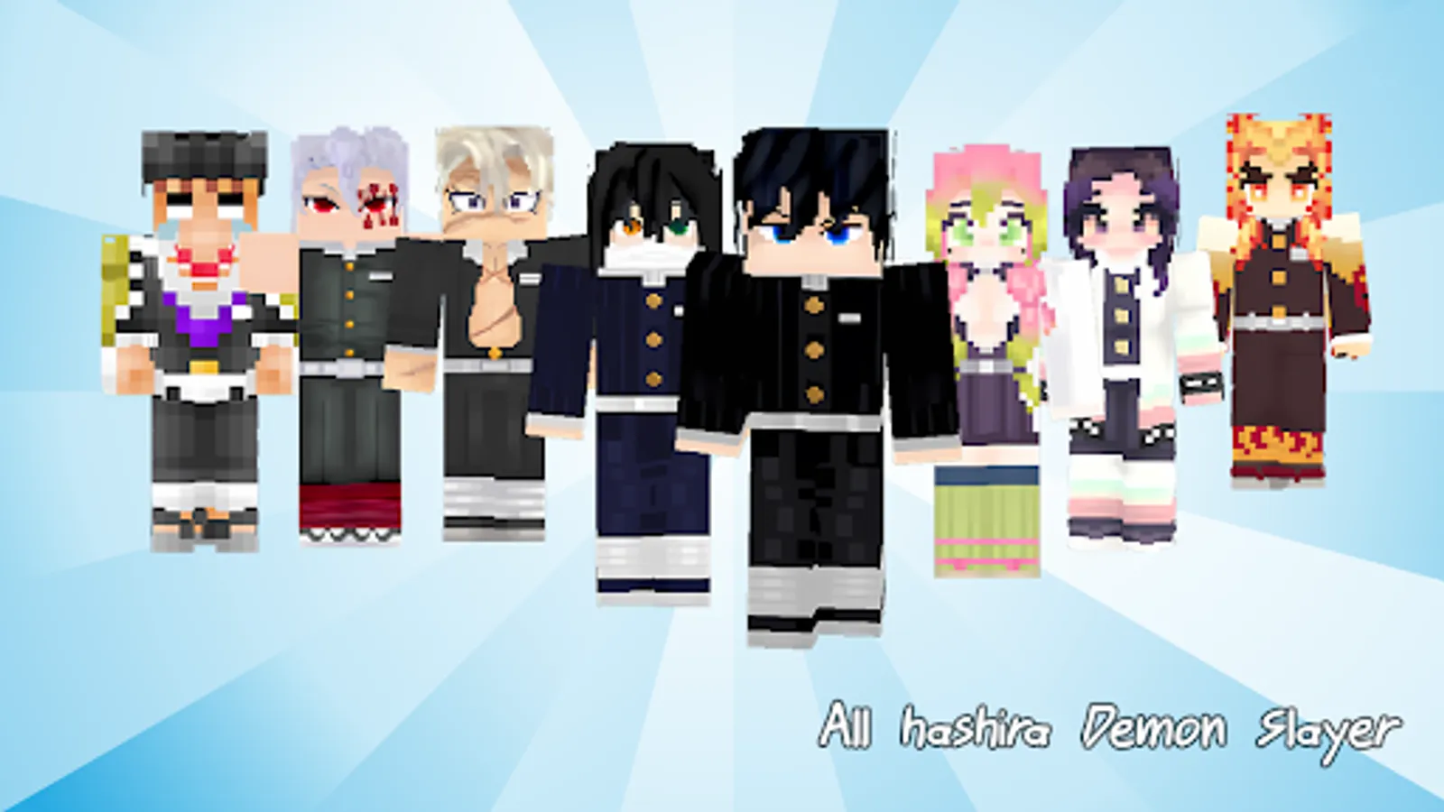Demon Slayer Skin Pack for Minecraft is a meticulously designed collection of skins inspired by the popular anime and manga series "Demon Slayer: Kimetsu no Yaiba." This pack brings the beloved characters and distinctive aesthetics of the series into the world of Minecraft, allowing players to assume the appearance of their favorite Demon Slayer characters while exploring and building in the blocky universe.