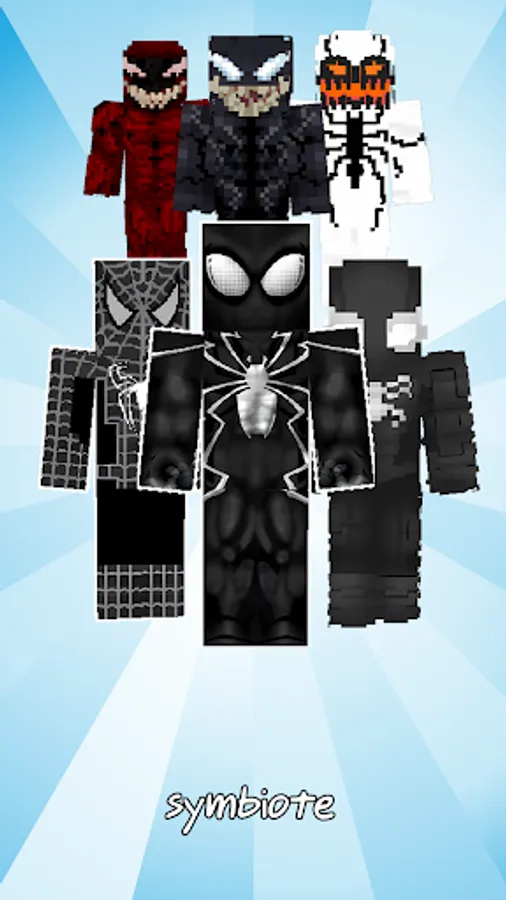 Diverse Skin Collection: The "Spider-Man Skins for Minecraft" app boasts an extensive collection of meticulously designed skins inspired by the diverse iterations of Spider-Man. Whether drawn from classic comic series, blockbuster movies, or animated shows, you'll find a rich variety of options to choose from. Select between the timeless red and blue suits, the enigmatic black symbiote suits, the cutting-edge Iron Spider variants, and much more.