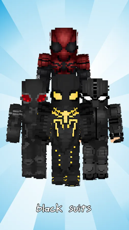 Regular Updates: To keep your Minecraft experience fresh and exciting, the app receives regular updates with new releases of Spider-Man skins. Stay ahead of the curve by accessing the latest Spider-Man suits and designs as they're added to the ever-expanding collection.