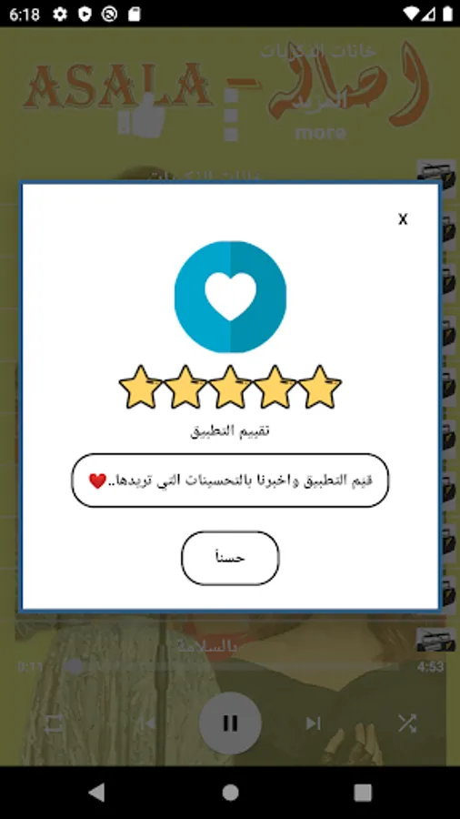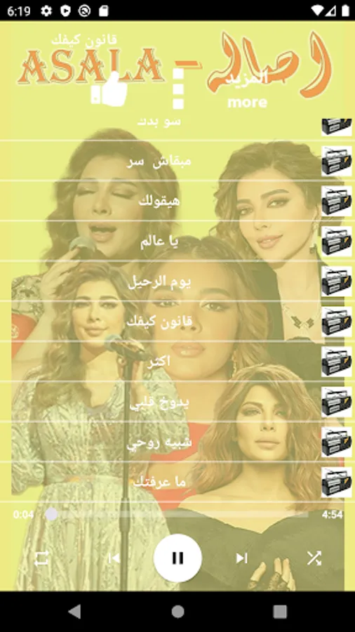 In this application, we have collected the best variety of the artist, Asala Nasri, without the net for you, and we promise you continuous updating and adding everything new continuously. To make this application, it took us a lot of time and effort to present it to you in this way, and to thank us if you liked the application or to support us if you did not like the application to do something It is better. Please download the application and share it with family and friends.