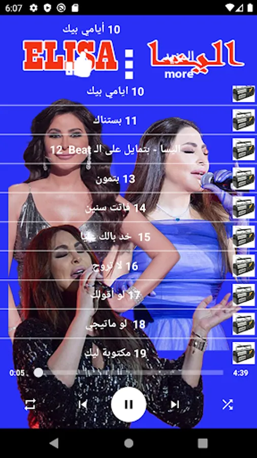 In this application, we have collected the most beautiful songs of the artist, Elissa, with continuous and free update 2023 for you, and we promise you continuous updating and adding everything new continuously. To make this application, it took us a lot of time and effort to present it to you in this way, and to thank us if you liked the application or to support us if you did not like the application To do better, please download the application and share it with family and friends.