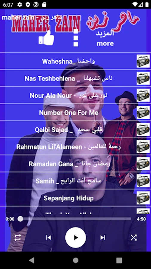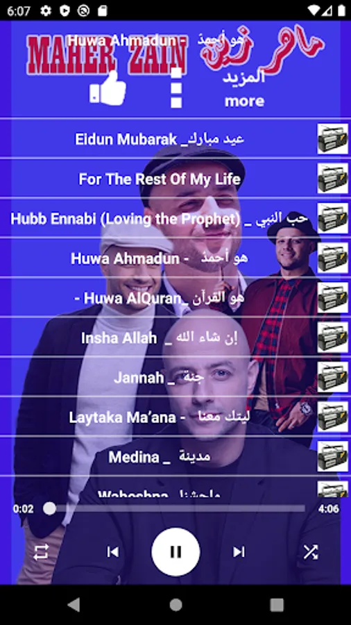 In this application, we have collected the most beautiful songs of Maher Zain for you, and we promise you continuous updating and adding everything new continuously. To make this application, it took us a lot of time and effort to present it to you in this way, and to thank us if you like the application or to support us if you do not like the application to do better. We hope Download the application and share it with family and friends.