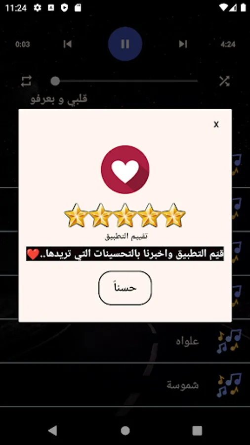 In this application, we have collected the most beautiful songs of Arab youth for you, and we promise you continuous updating and adding everything new continuously. To make this application, it took us a lot of time and effort to present it to you in this way, and to thank us if you like the application or to support us if you do not like the application to do better. We hope Download the application and share it with family and friends.