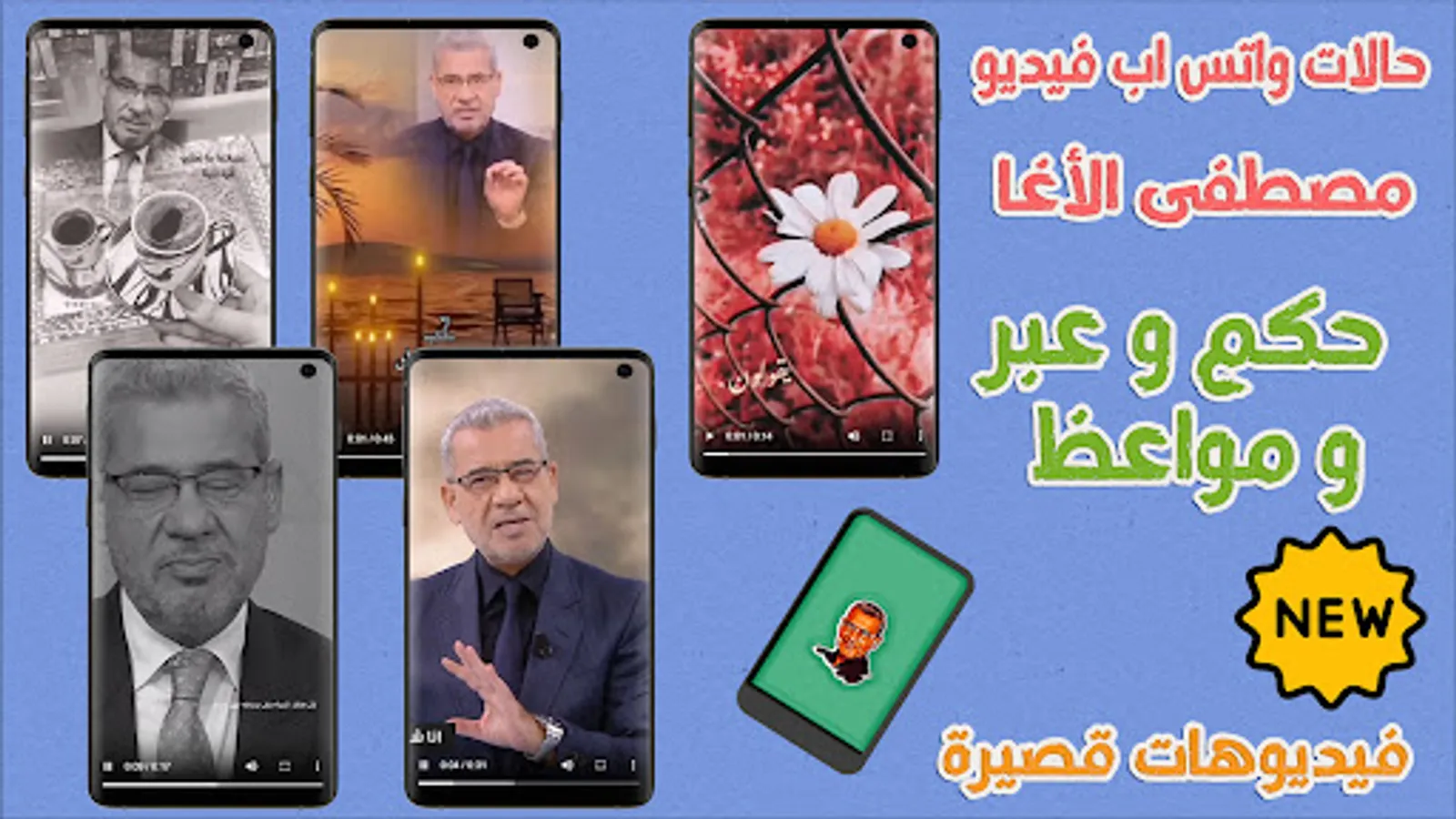Mustafa Al-Agha's WhatsApp video cases are full of wisdom and sermons. You will find in these short video clips that were designed using a video design program and video editor to be rich in beautiful phrases and WhatsApp cases writing about life.
