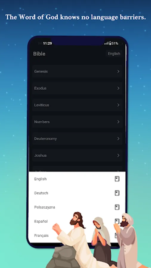 The KJV Bible in multiple languages, including English, Deutsch, Polszczyzna, Español, and Français. Access the Word of God in your preferred language, offline and on-the-go.This app allows you to read and study the King James Version Bible offline, anywhere and anytime. No internet connection is needed to access the complete text of the KJV Bible, along with its accompanying features such as bookmarks, notes, and search functionality. Additionally, you can share your favorite verses with others through social media, email, or messaging apps. With a clean and user-friendly interface, this app provides a seamless and enriching Bible study experience. Download the KJV Bible - Offline app today and delve into the Word of God.