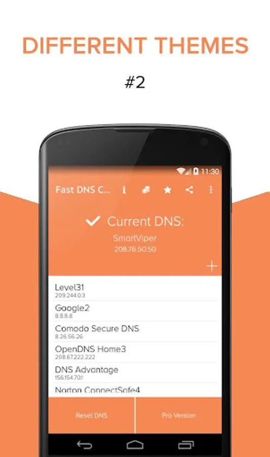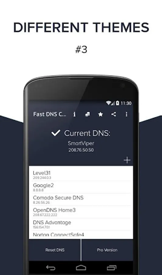 ● 15 Different DNS Servers Options : This App has initially 15 dns servers. You can use anyone of them. According to your needs and your location some of them can be more useful than others.