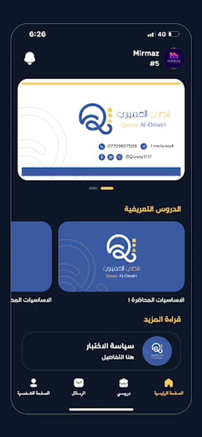 Qusay Al-Omairi application is a specialized application for teaching sixth science students exclusively for mathematics. What distinguishes this application is that the student can organize whenever he wants to the course, whether for a full curriculum or he chooses the chapter he wants