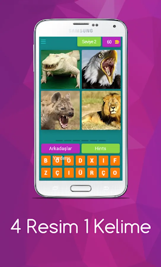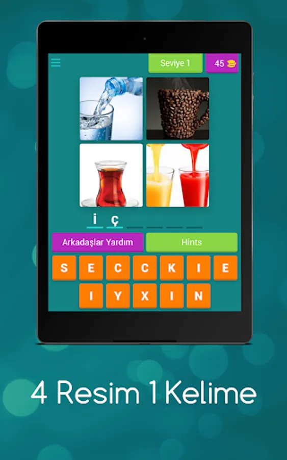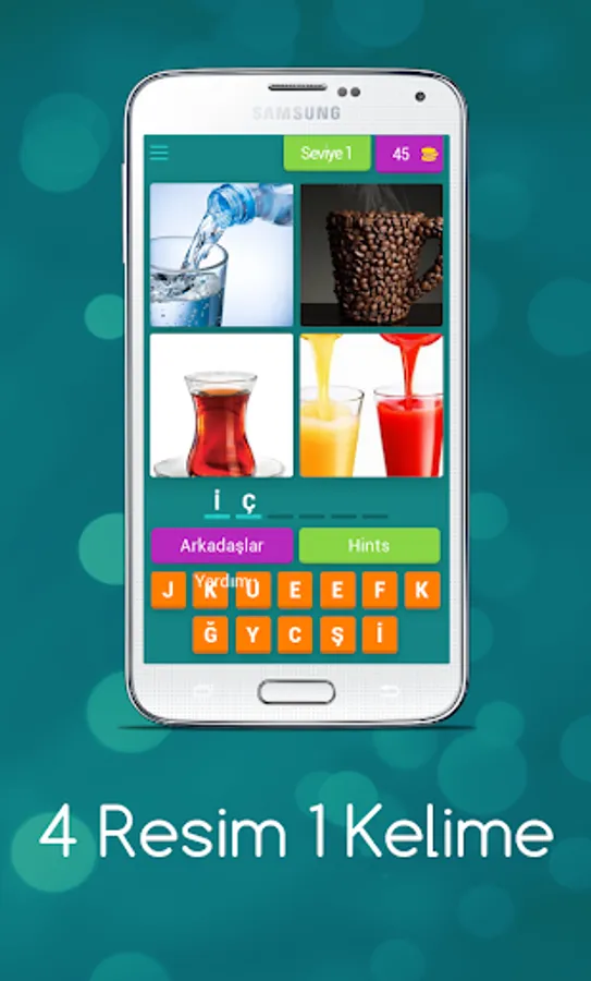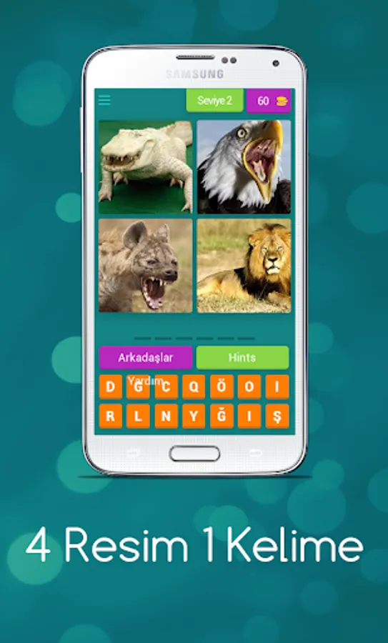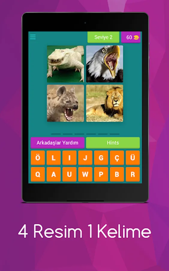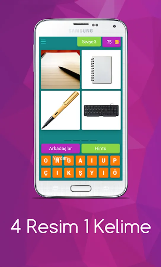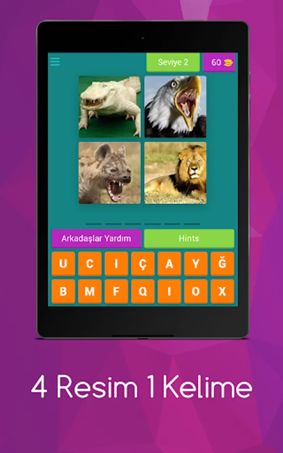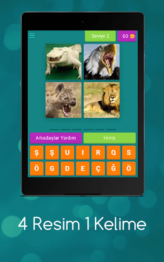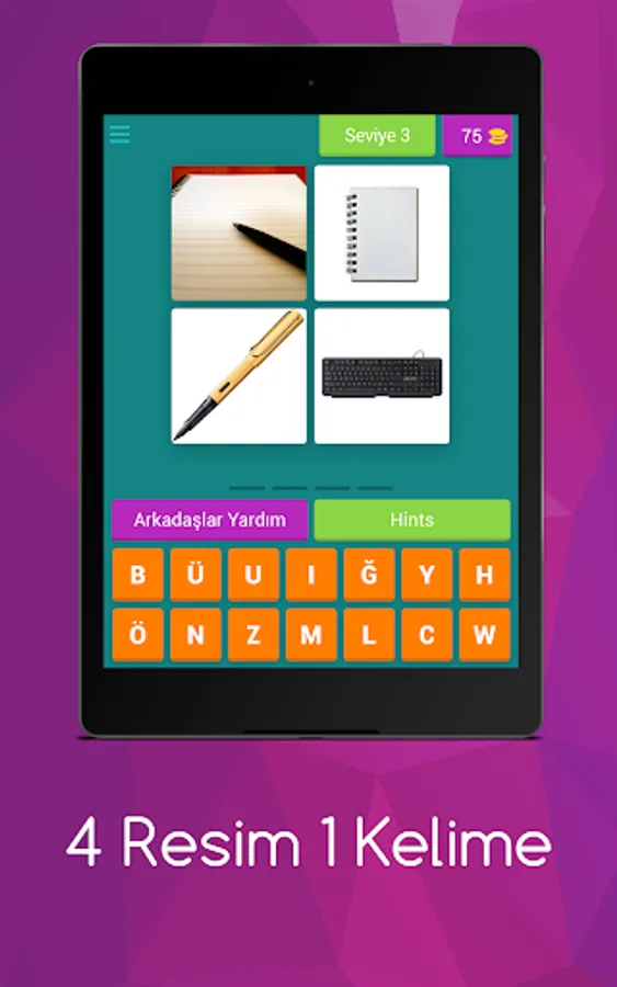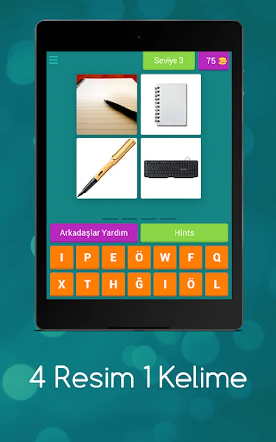 Try to find the word described with 4 pictures. Earn gold by guessing the answers correctly.