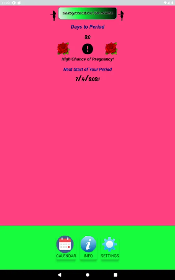 Disclaimer: This application Period, ovulation, fertile, and estimated pregnancy days predictions may not be accurate and should not be used to prevent unwanted pregnancy. Accuracy depends on a number of different factors such as your emotional, physical and psychological situation. Users are responsible for log in the app their cycle length, and period length accurately. If your beginning day of period chances irregularly please, set period start day by using related button in the app.