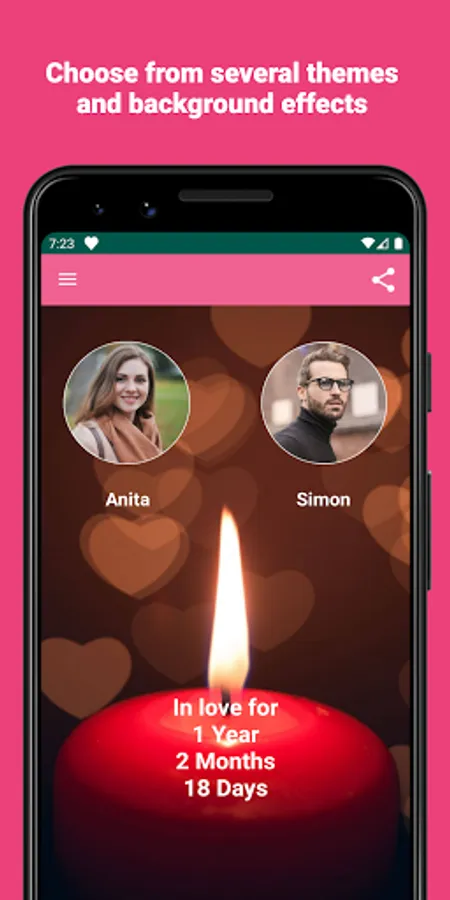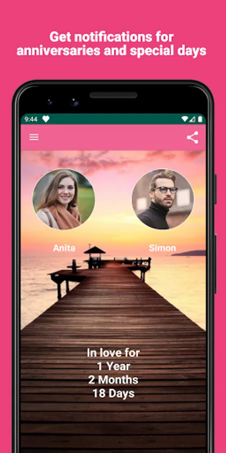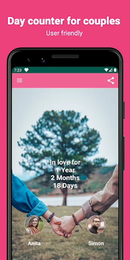 Been together. Valentine's day. Relationship days counter. With this application, your lover will be always with you.