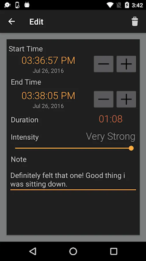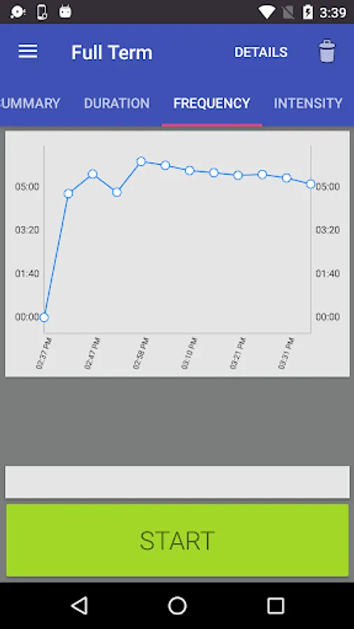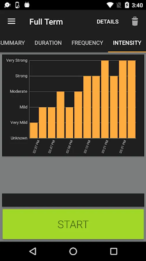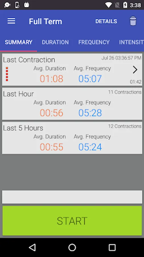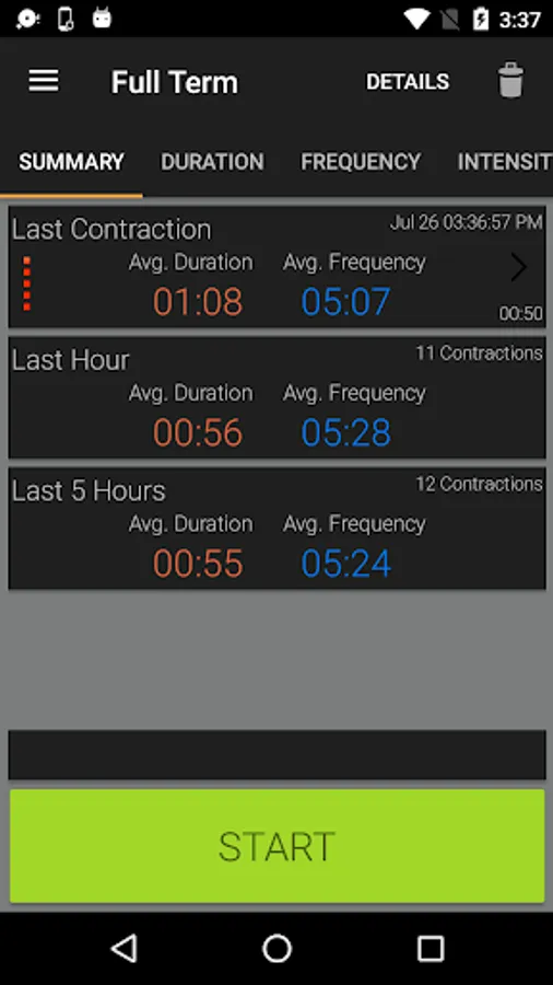 You have to tap a single button to track the start and end of each of your contractions, and "Full Term" will take care of the rest. The application is designed to keep track of the times, durations and frequency of the entire labor period.