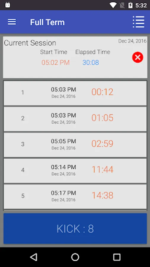 - Configure to automatically end the session when you reach your desired duration or kick count