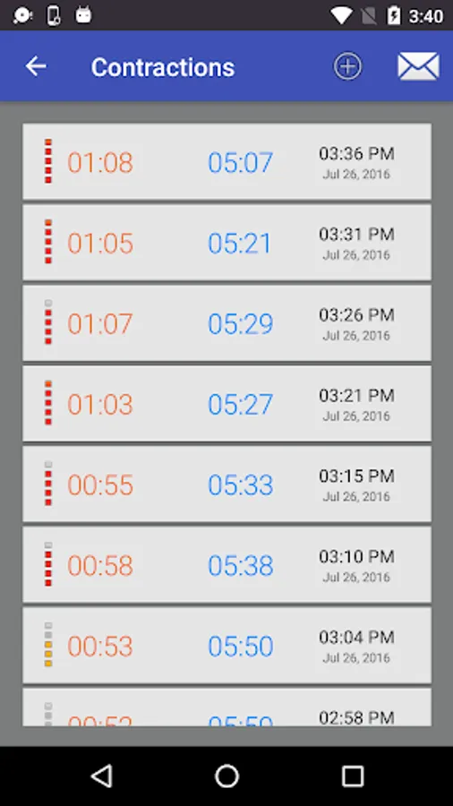 Your full labor history and contraction progress will be saved regardless of whether you restart the application during your labor, or restart the entire device. There is no need to keep this application open the whole time. You can even email your contraction history to a health care professional or to yourself for your own records.