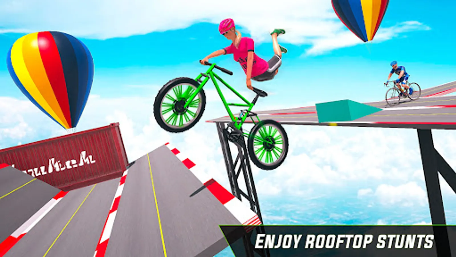 Multiple environment selections of cycle game and smooth interface will entertain the players in bicycle games. The ultimate concept of a stunt game where you can compete others with high speed cycle game. Go and control the handle to manage the speed and acceleration of cycle stunt race 3d. Perhaps you have played many car and bike stunt games but this impossible bicycle driving games is unique cycle race. This mega ramp stunt racing game is thrilling creation for kids and adults where multiple modes of racing game give the player engaging fun. Go and complete the challenges of sky rooftop to perform stunt, driving and racing. Play cycle stunt race game 3d to achieve the reward in driving games.