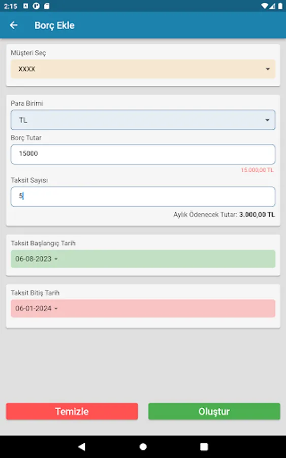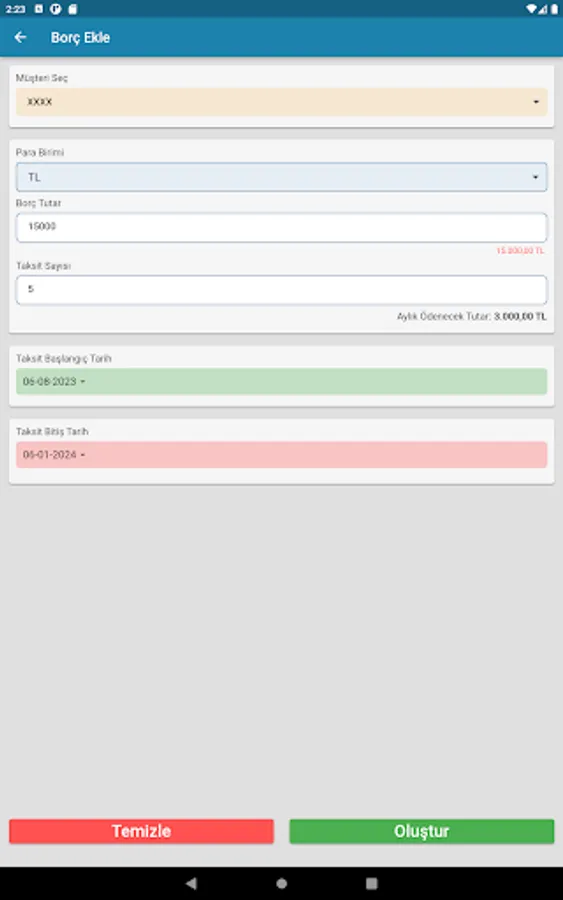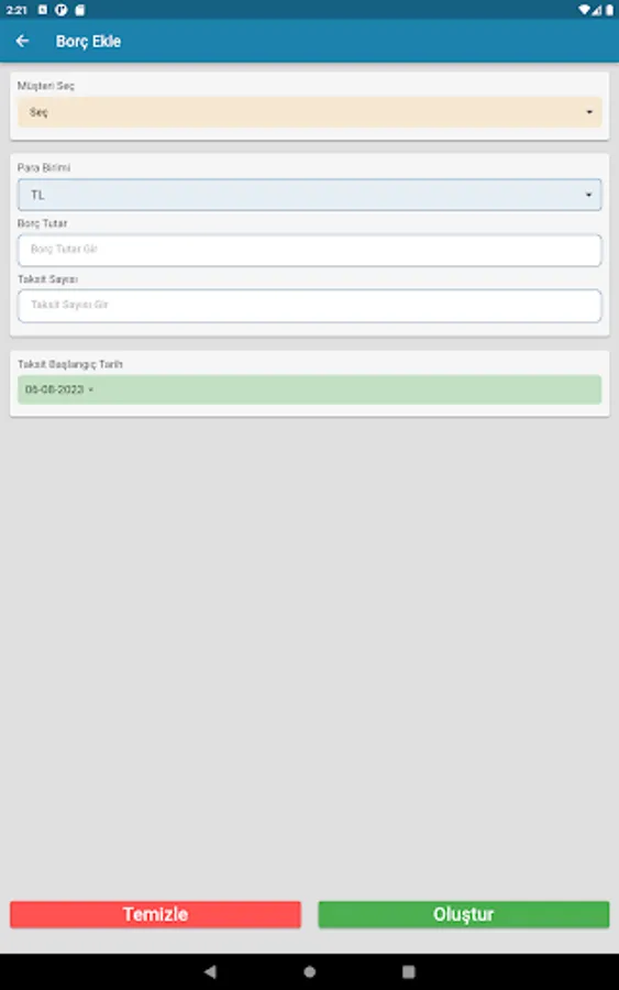 You can create Customer Cards with Customer Tracking Mobile Application. With the Customer Cards created, you can add Debit in Installments and follow up.