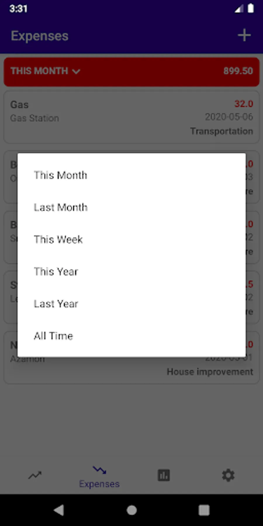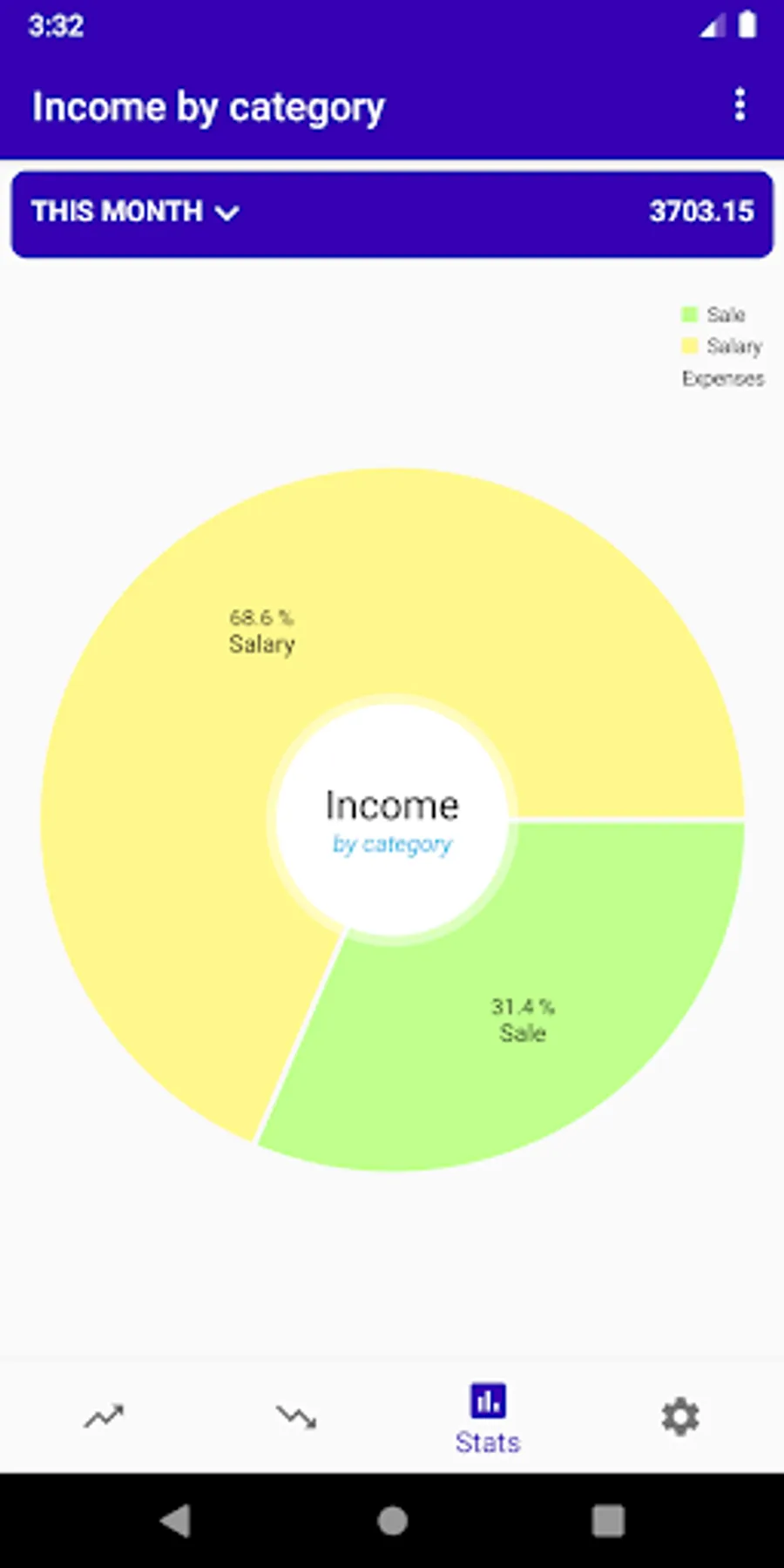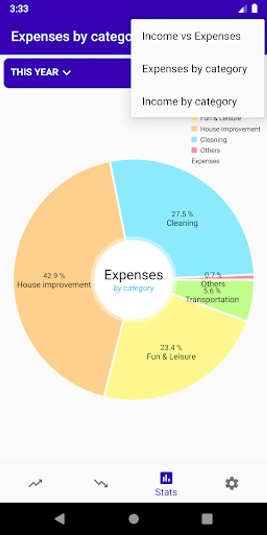 • View reports for various time frames. The app shows graphical reports so you can see how the income and the expenses have changed.