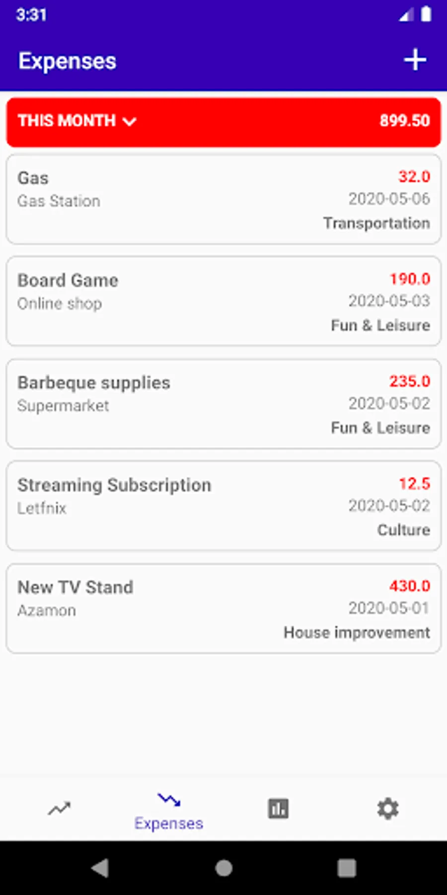Simple and easy to use, so you'll never forget to add any income or expense to your list.