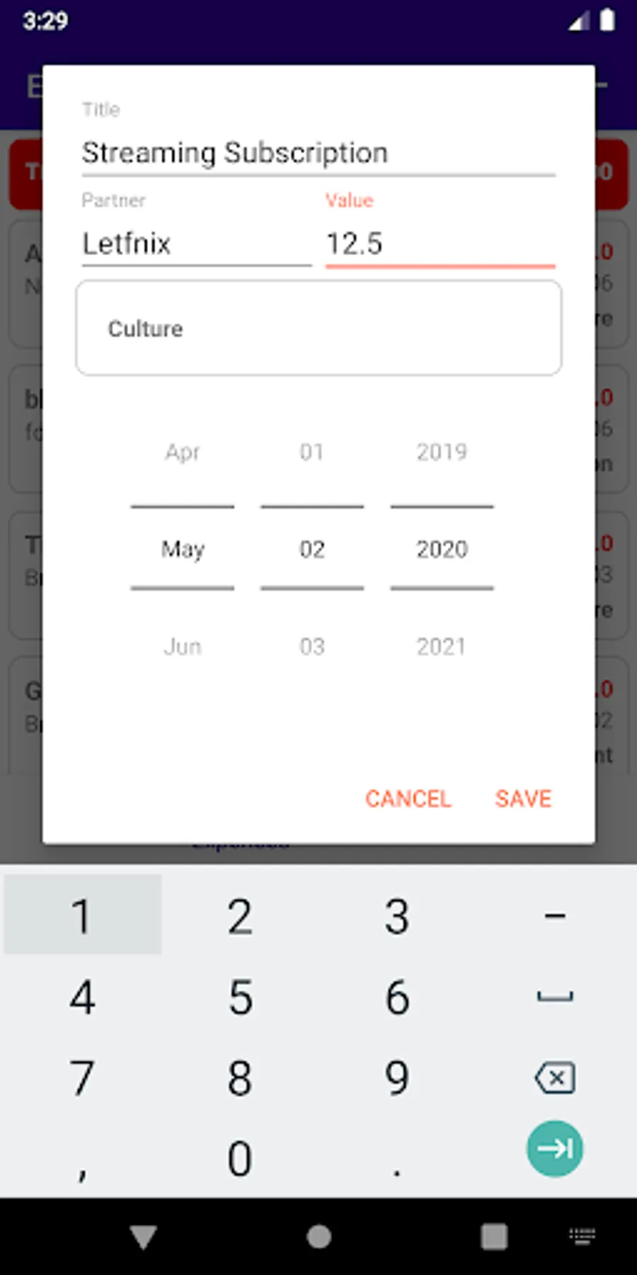 • add income and expenses events in a second: just add Title, a Partner, the Category, the Value and the Date. Just the most important things when you want to keep track of your income and expenses.