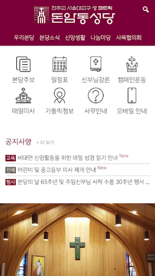 The app of the Catholic Church Donam Cathedral. You can receive parish news and schedules, mass times and video messages. You can receive various news from the parish like KakaoTalk.