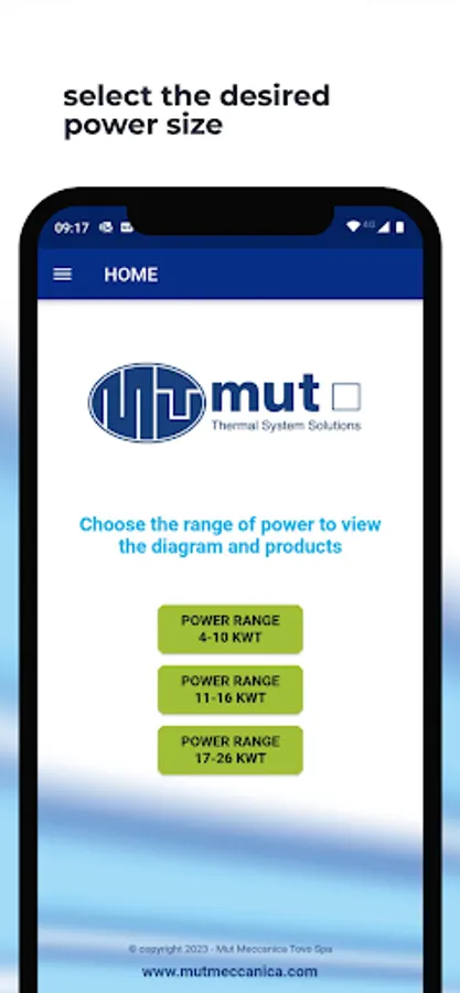 We are pleased to present the new MUT SELECTION application, which makes the useful MUT Handbook on the best MUT products for heat pump installations and hybrid systems available. This mobile app has been designed to offer a simple and intuitive user experience, allowing customers to choose the appropriate MUT product based on the 3 thermal power ranges of the Heat Pump: 4-8 kWt, 11-16 kWt, 17-26 kWt. Once the thermal power size is selected, the app will display all the recommended MUT products for that power size*. For each product, it will be possible to read a detailed description, learn about the benefits of using it, and download the technical data sheet. Moreover, if further information is desired, it will be possible to contact our customer service through the app. MUT SELECTION is a practical and convenient solution to learn about the most suitable MUT products for one's needs. *Note: The sizing and verification within the specifications of a project must be verified/performed by an authorized technical designer in compliance with mandatory regulations.