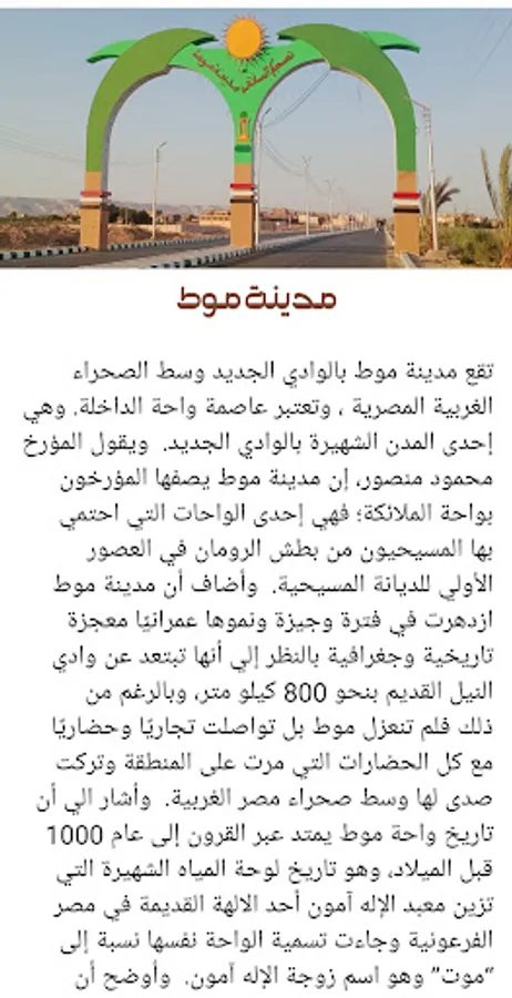 An application that contains all the data you want to know on all governmental and private interests located in the city of Mut, the capital of the Dakhla Center in the New Valley Governorate