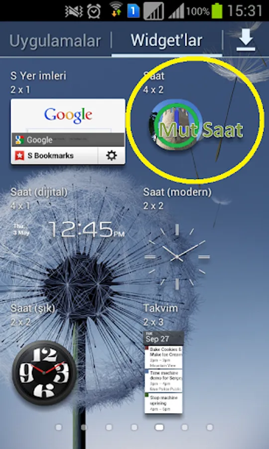 3) Look for the icon of the Happy Clock Widget and drag and drop it anywhere on your screen
