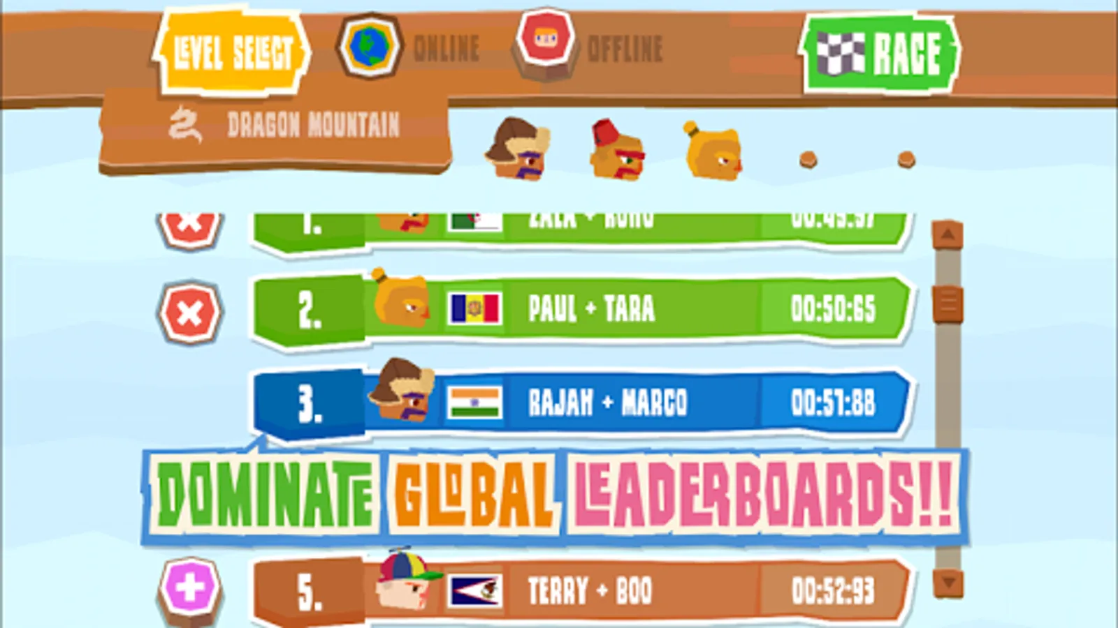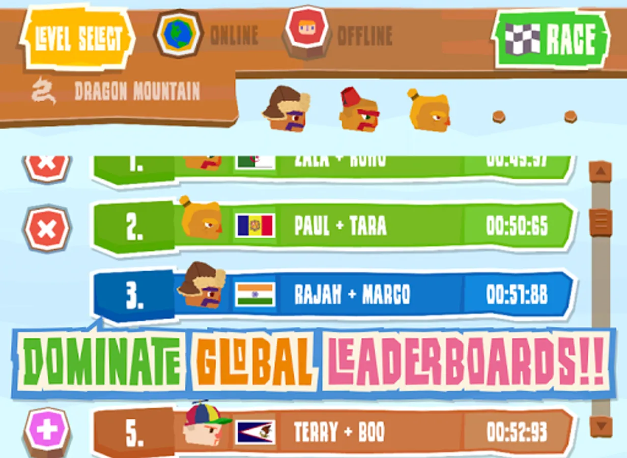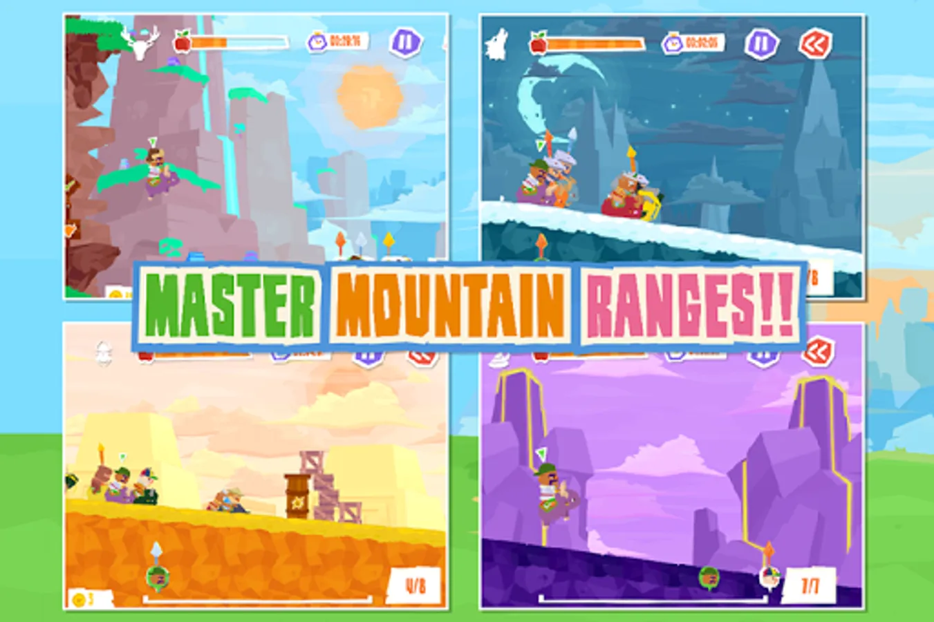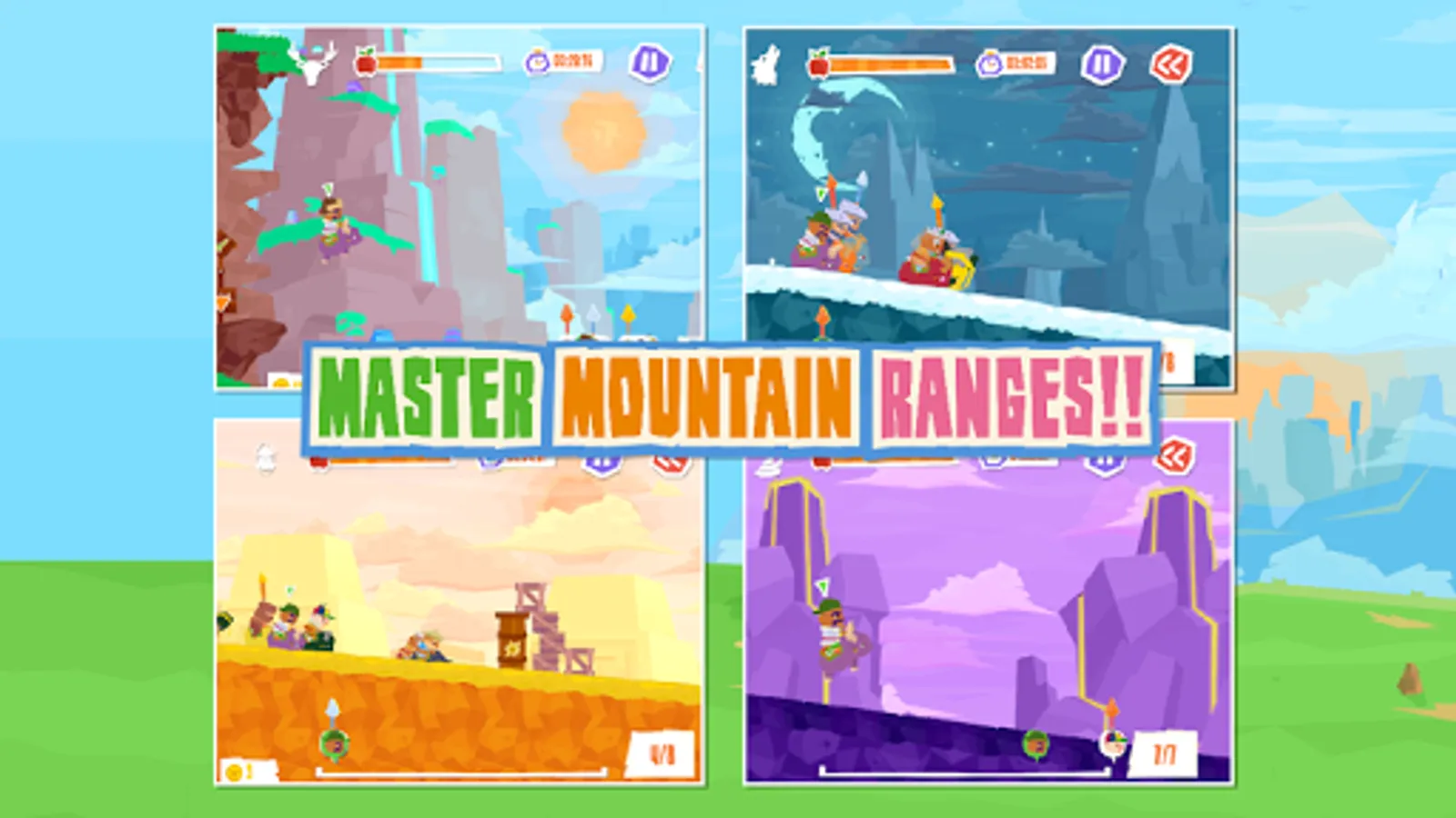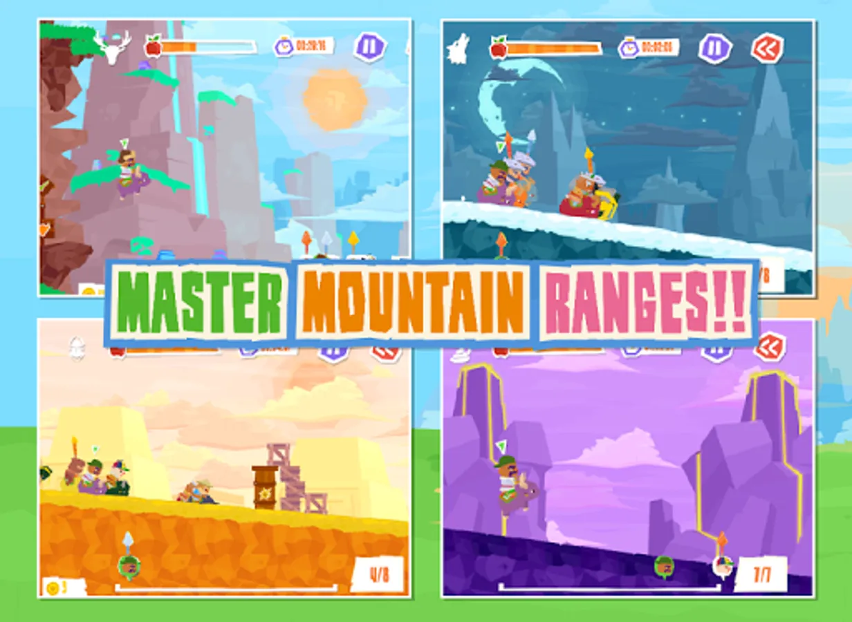 - Beat mountain flagbearers to gain medals and unlock progressively more challenging routes.