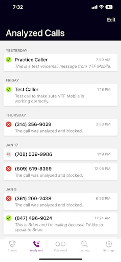 View and manage filtering activity with VTF Mobile tools including a dynamic dashboard, detailed analytics, visual voicemail, and personal block/allow lists.